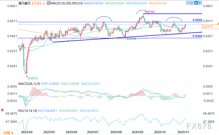 当然,后续上涨空间尚不确定,但从技术面看,0.6595美元阻力位与0.6600美元整数关口重合,可能成为关键阻力。在此之上的阻力位在0.6620/0.6630附近。