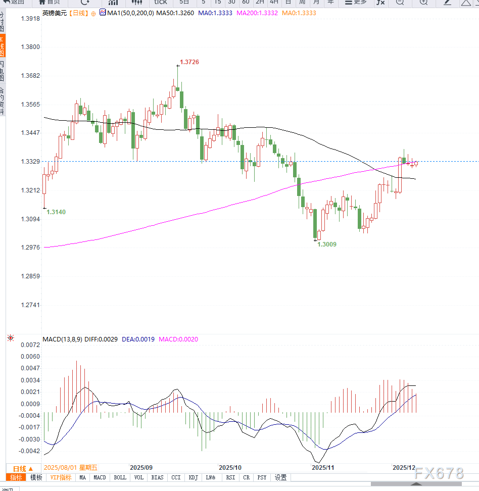 从当前的结构来看,英镑兑美元在1.3300上方的企稳更多来自美元疲弱,而非英镑本身的强势。短期走势将继续围绕两大央行的政策差异展开。