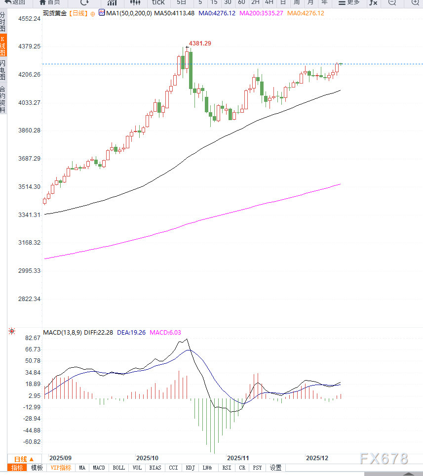 若金价能稳固在4,250美元上方,则下一关键阻力区域在4,300美元附近。若出现回调,短线支撑关注4,210美元与4,180美元区域,此处为重要均线密集区,预计将吸引买盘入场。